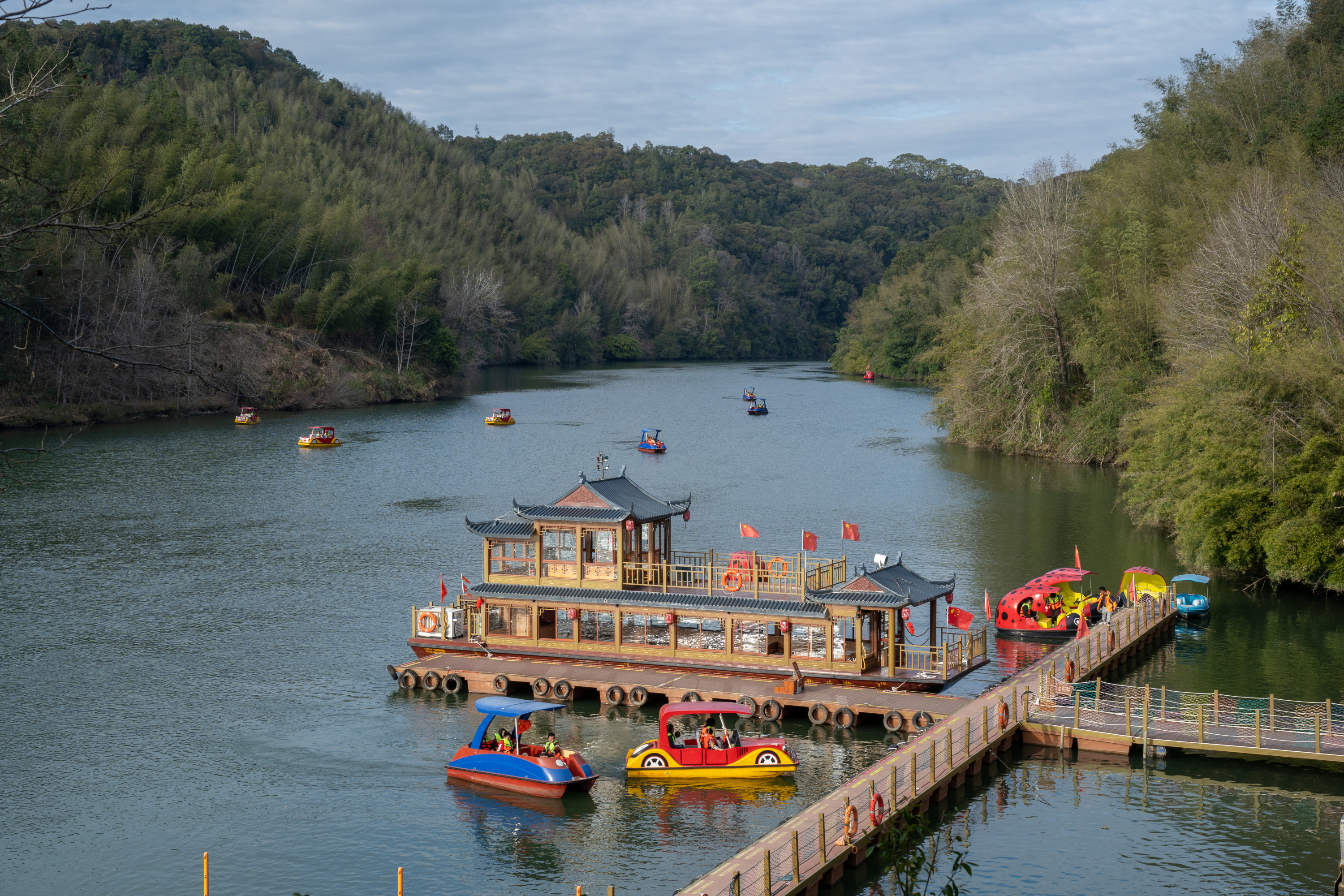 度假村山清水秀,空氣清新。九曲河為東江之源,度假村依山傍水,景區占地面積近3千畝,森林覆蓋面積達80%,年均氣溫19℃左右,空氣相對濕度75%,負氧離子濃度達到10萬個/立方厘米以上,比城市多50—100倍,是天然的大“氧吧”。